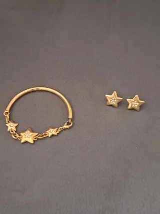 Set di gioielli con design a tema stelle. - Braccialetto con vari ciondoli a forma di stella. - Orecchini abbinati a forma di stella.