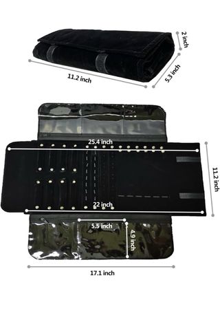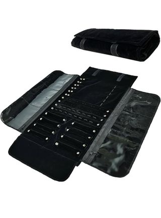 Pratico organizzatore pieghevole per gioielli, ideale per viaggi o per mantenere i tuoi accessori in ordine a casa. Il design permette di riporre collane, bracciali, anelli e orecchini. - Materiale esterno in velluto. - Scomparti interni con chiusure. - Design arrotolabile per un facile trasporto.