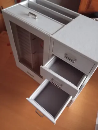 Organizzatore gioielli elegante con molteplici scomparti per i tuoi accessori. Design moderno e funzionale. Cassetti con maniglie metalliche. Scomparti interni foderati.