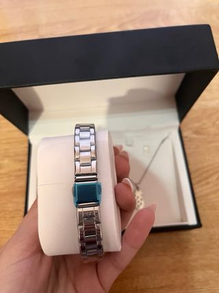 ⌚🍍 Orologio Skyline da donna + collana e orecchini – Set completo. Set di orologi Skyline da donna con design elegante. Quadrante argentato con finitura geometrica e dettagli brillanti, cinturino in metallo argentato. Include collana e orecchini abbinati con motivo ananas. ✔️ Movimento al quarzo ✔️ In ottime condizioni ✔️ Include la scatola originale ✔️ Ideale come regalo ✔️ Include regalo del venditore 🎁. Un set moderno e femminile, perfetto per ogni occasione. 📦 Consegna a mano o spedizione tramite Wallapop.