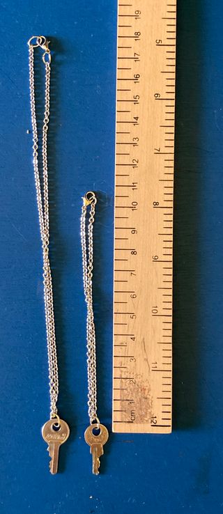 Set di collana e braccialetto con ciondolo a forma di chiave. - Lunghezza collana lunga: 18 cm circa. - Lunghezza braccialetto: 11 cm circa.