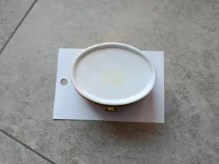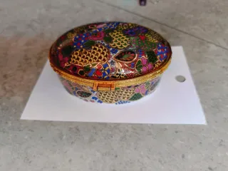 Elegante portagioie con una vivace decorazione floreale e motivi che ricordano le piume. - Design ovale. - Bordi e cerniera dorati. - Decorazioni multicolore In ceramica Senza segni d'usura