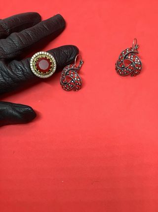 Completo vintage anello e orecchini pietre rosse