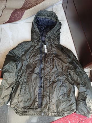 Giubbotto da uomo Timberland con cappuccio. GIUBBINO UOMO DI NYLON CON CAPPUCCIO BRAND TIMBERLAND COLORE GRIGIO TAGLIA L - Realizzato in nylon. - Taglia L. - Colore verde/marrone. - Made in Bangladesh. - Fabriqué au Bangladesh.