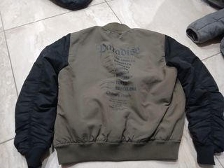 Bomber da uomo Bershka con un design moderno e versatile. GIUBBINO UOMO IN POLIESTERE BRAND BERSHKA COLORE VERDE E NERO TAGLIA M - Maniche in contrasto. - Tasche frontali con chiusura a bottone. - Polsini e fondo elasticizzati.