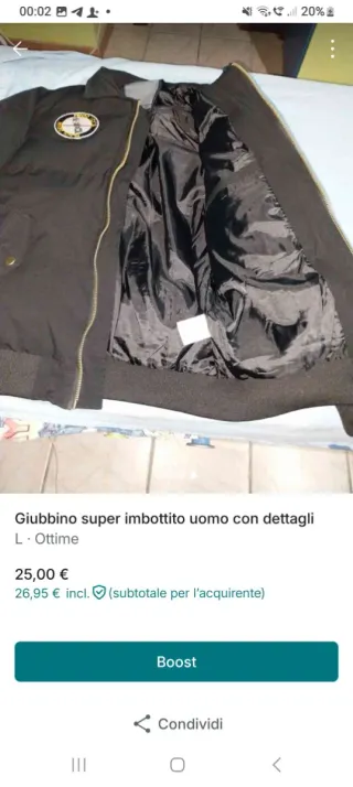 - Collo alto per maggiore protezione. - Chiusura centrale con zip. - Tasche laterali con zip. MARCA: "COTTON & SILK" PIUMINO SPORTIVO UOMO TG. USATO, OTTIME CONDIZIONI, NESSUN DIFETTO, MINIMI SEGNI DI UTILIZZO. APERTURA A CERNIERA. DUE TASCHE LATERALI CON APERTURA A CERNIERA. DUE TASCHE INTERNE APERTE. ESTREMAMENTE LEGGERO E COMODO. LA SUE IMBOTTITA CONFERISCE AL PRODOTTO UNA INCREDIBILE PROTEZIONE DAL FREDDO. PERFETTO IN INVERNO. CONSULTARE LE MISURE FORNITE DI SEGUITO: - ALTEZZA TOTALE 65 CM - LARGHEZZA TORACE 50 CM - LARGHEZZA SPALLE 45 CM - LUNGHEZZA BRACCIO 65 CM
