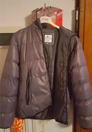 Giaccone imbottito da uomo. Indossato solo una volta. - Cappuccio con coulisse. - Tasche laterali con zip. - Polsini elasticizzati.