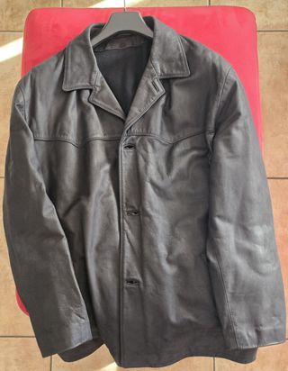 Elegante giacca da uomo in vera pelle nera. Un capo classico e versatile. - Materiale: Vera pelle con imbottitura interna - Colore: Nero - Taglia: 58 Consegna a mano a Roma o spedizione a carico dell'acquirente. Per maggiori informazioni o foto aggiuntive, contattatemi.