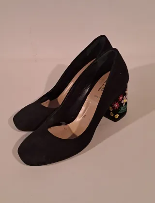 Eleganti décolleté Debutto Donna in camoscio con un tocco di originalità dato dal tacco ricamato. - Materiale scamosciato. - Tacco decorato con fiori. - Design a punta quadrata.