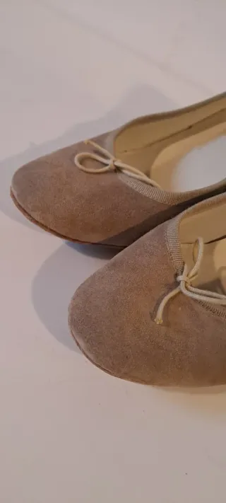Eleganti scarpe décolleté ALAN PEREZ tg. 38 con tacco alto e punta aperta. Realizzate in morbida pelle scamosciata. - Decorazione a forma di fiore sul davanti. - Tacco sottile e slanciato. - Fodera interna in pelle.