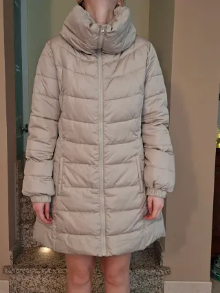 Elegante piumino Sisley color beige, perfetto per le giornate più fredde. Presenta un design trapuntato e un collo alto avvolgente. - Chiusura con zip frontale. - Tasche laterali. - Polsini elasticizzati.
