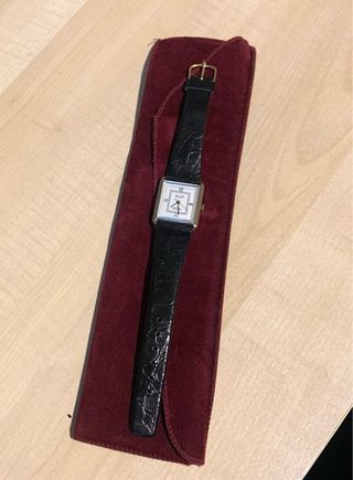 Orologio femminile anni ‘80 funzionante (necessita di cambio batteria). Cinturino nero. Mai utilizzato, venduto in elegante custodia di velluto bordeaux. - Cinturino in simil pelle nera con finitura lucida. - Cassa rettangolare argentata - Quadrante bianco con indici romani.