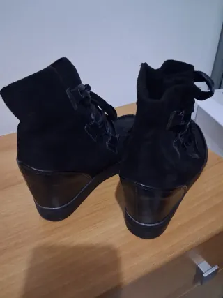 Eleganti scarponcini in camoscio. - Dettagli con lacci. - Tacco a zeppa.