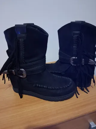 Stivaletti alla moda con un design unico. - Materiale scamosciato - Dettagli con frange - Fasce decorative in pelle
