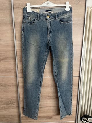 Jeans Jacob Cohen in taglia 31. - Modello sartoriale. - Chiusura con bottone e zip. - Tasche anteriori e posteriori. - Dettagli con cuciture a vista.