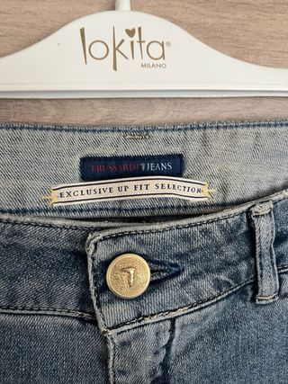 Jeans Trussardi in denim. - Vestibilità comoda. - Design classico . - Chiusura con zip e bottone.