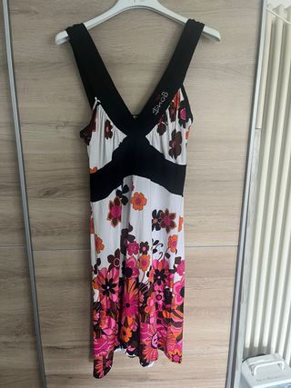 Vestito estivo con spalline regolabili. - Tessuto leggero e confortevole. - Design con elastico sul busto. - Lunghezza midi.