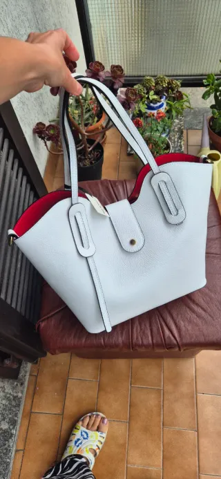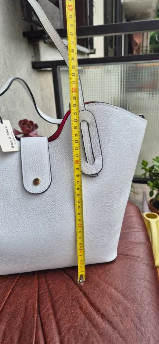 Borsa in vera pelle, un accessorio elegante e capiente. - Materiale: vera pelle - Colore esterno: bianco - Colore interno: rosso