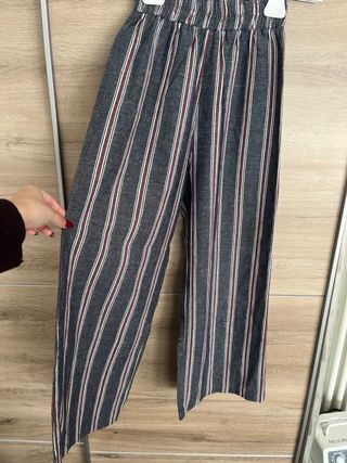 Pantaloni palazzo a righe verticali. - Vita elasticizzata. - Gamba larga. - Tessuto morbido e confortevole.