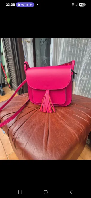 Borsa a tracolla in pelle con un design elegante e una nappina decorativa. - Materiale: Pelle - Colore: Fucsia - Dettaglio: Nappina - Tracolla regolabile