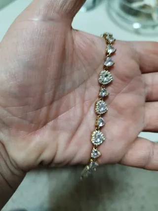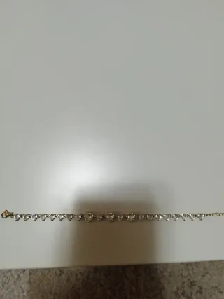 Elegante braccialetto con pendenti a forma di cuore tempestati di zirconi. - Materiale: Acciaio inossidabile. - Design: Cuori con zirconi. - Chiusura: Moschettone.