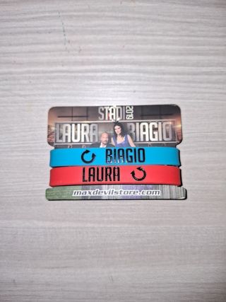 2 braccialetti in silicone Laura e Biagio stadi 2019. Usato poche volte in buonissime condizioni. Spedisco.