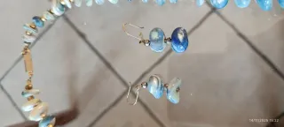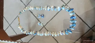 Set vintage composto da girocollo e orecchini. - Perle in madreperla con sfumature blu e bianche. - Dettagli dorati tra le perle. - Chiusura a moschettone per la collana.
