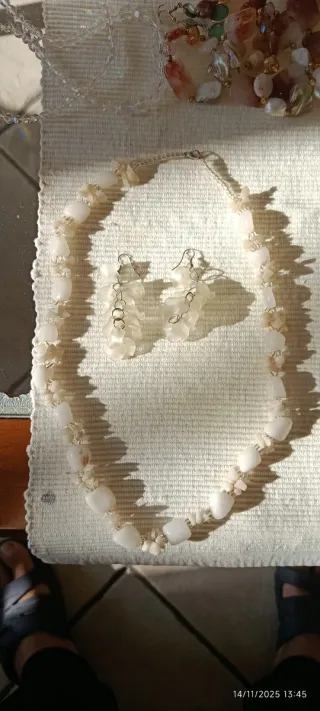Girocollo Collana Orecchini madreperla vintage