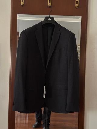 Completo elegante conbipel da uomo colore nero dal taglio classico, perfetta per occasioni formali o per completare un look curato, giacca con 3 bottoni fodera interna e con tasche. Pantaloni con passanti per cintura e tasche. Chiusura con bottone sui pantaloni misura 52, per info non esitate a contattarmi tramite messaggio
