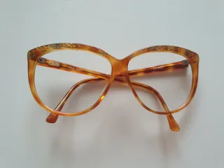 Montatura occhiali da donna vintage anni '70 originale oversize Made in Italy, color ambra/miele, senza lenti, in ottime condizioni, con le aste non rovinate. Decorazione sulla parte superiore frontale. #vintageglasses #vintage #madeinitaly