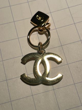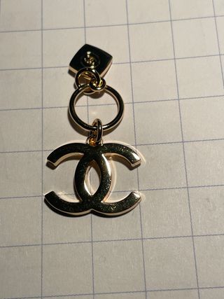 Ciondolo a forma di boccetta di profumo Chanel, con logo. - Finitura color oro lucido. - Design iconico a forma di boccetta di profumo. - Completo di anello per aggancio.