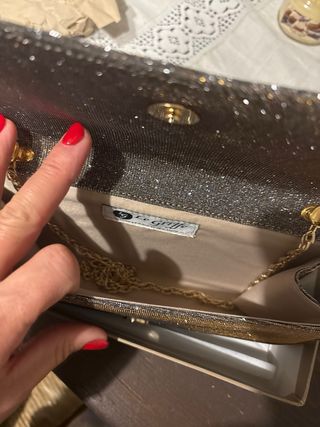 Elegante pochette con finitura glitterata. - Dettagli in oro e nero - Design a busta.