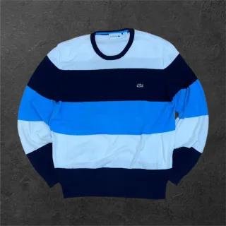 Marca: LACOSTE 🐊 Modello: Maglione Girocollo a Righe Color Block 🧶 Taglia: US M / FR 4 📏 (Vestibilità regolare) Stato: Condizioni eccellenti, trama del tessuto integra ✨ Colore: Righe orizzontali Blu Navy, Bianco e Azzurro 🎨 Materiale: 100% Cotone di alta qualità 🌿 Design: Look casual-chic con bordi e polsini a costine 👔 Logo: Iconico coccodrillo verde ricamato sul petto ✍️ Codice Articolo: F8425 🔎