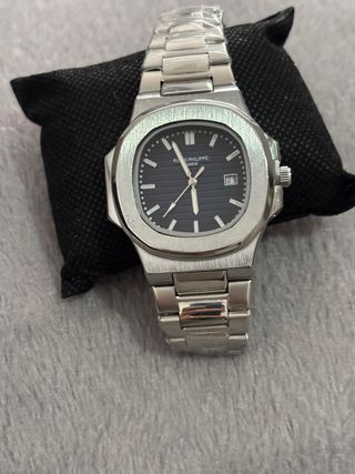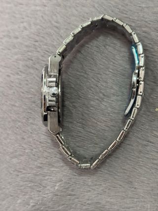 Orologio da polso con cassa e cinturino in metallo argentato e quadrante nero. - Design elegante e moderno. - Dettagli in argento sul quadrante. - Datario visibile.