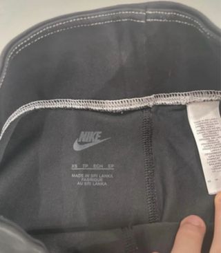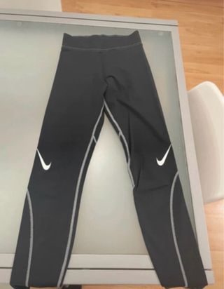 Leggings sportivi da donna. - Logo Nike bianco. - Cuciture a contrasto grigie.