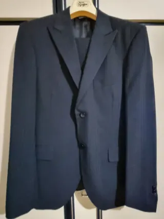 Vendo vestito colore nero grigio, giacca e pantaloni gessato misura 52, primavera, autunno. Giacca monopetto con chiusura a due bottoni. Tasche a filetto sul davanti. Pantaloni dal taglio classico con tasche anteriori e posteriori con bottoni veste vita larga. Per info non esitate a contattarmi tramite messaggio