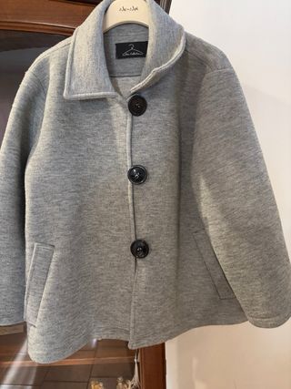 Elegante giacca da donna con chiusura a bottoni. - Tessuto morbido e confortevole. - Design moderno con colletto ampio. - Tasche laterali applicate.