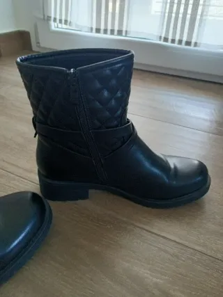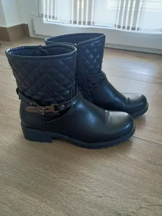 Eleganti stivaletti neri con un design trapuntato e dettagli con fibbia. - Tomaia in ecopelle. - Fodera interna in tessuto. - Suola in gomma antiscivolo. - Zip laterale per una facile calzata.