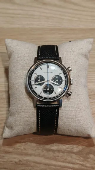 Elegante cronografo ispirato agli anni ’60, il Dan Henry 1962 unisce design classico e qualità moderna. Un modello molto apprezzato per il suo stile pulito e senza tempo, ideale sia per l’uso quotidiano che per i collezionisti. 🔹 Cassa: Acciaio inox 39 mm 🔹 Quadrante: Stile vintage ad alta leggibilità 🔹 Movimento: Cronografo al quarzo Seiko, preciso e affidabile 🔹 Vetro: Zaffiro 🔹 Impermeabilità: 50 m 🔹 Condizioni: Full set completo (scatola, documenti e accessori originali)