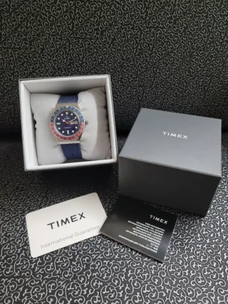 Orologio Timex Q Diver con cassa 38 mmin acciaio e cinturino in gomma blu. Lunetta girevole bicolore blu e rossa. - Quadrante blu. - Indici applicati. - Datario. - Movimento al quarzo. garanzia internazionale 2 anni dal 01.2026 con scontrino! (regalo non gradito)