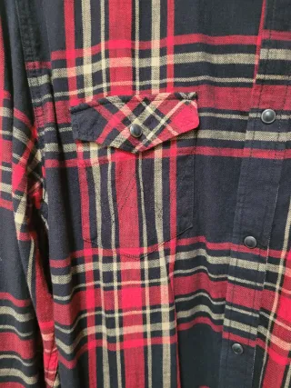 Camicia a maniche lunghe con un classico motivo a quadri. Taglia XL regular fit. - Fantasia a quadri rossi, neri e beige. - Collo classico. - Chiusura con bottoni neri a clip. - Due tasche sul petto. -cotone 100% - come nuova mai indossata.