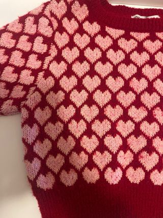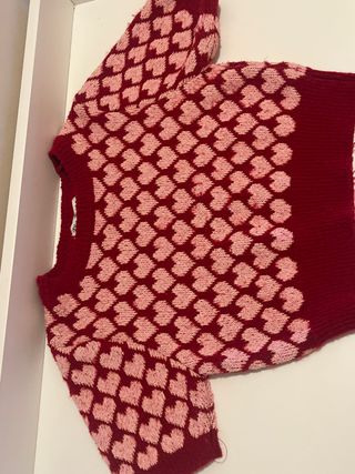 Maglioncino con un simpatico motivo a cuoricini. - Maniche corte. - Girocollo. - Tessuto morbido e caldo - Ottime condizioni