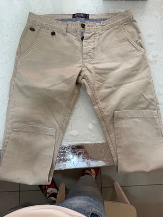 Pantaloni da uomo Alcott in un classico colore beige. - Chiusura con bottoni. - Tasche anteriori. - Dettagli con cuciture a vista.