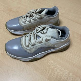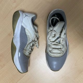 Vendo sneakers Jordan originali, un modello versatile che unisce lo stile iconico del brand al comfort per l'uso quotidiano. La scarpa presenta un'estetica pulita con una palette di colori neutri. Caratteristiche Principali: • Design: Combinazione di mesh traspirante sulla linguetta e pelle sintetica/verniciata sulla punta grigia. • Colore: Grigio fumo, bianco ghiaccio e dettagli in gomma color gomma naturale (gum sole). • Dettagli: Logo Jumpman ricamato lateralmente sul tallone e sulla linguetta. • Suola: In gomma resistente con un ottimo grip, ideale per il tempo libero. • Stato del prodotto: Usate.