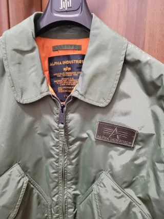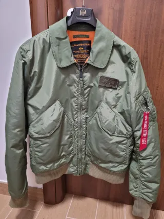 Giacca bomber originale Alpha Industries modello CWU vf tt. - Colore verde oliva. - Patch applicato sul petto. - Zip frontale. - Tasche frontali con patta. - Polsini e fondo a costine elasticizzate! perfetto stato! usato pochissimo! taglia XL