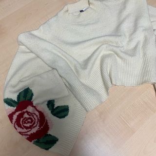 Maglioncino colore panna/avorio, in tessuto morbido e caldo, molto confortevole. Modello con girocollo e maniche lunghe, rifinito con bordi a costine su collo, polsini e fondo. Dettaglio particolare e romantico: rosa lavorata a maglia nei toni del rosso/rosa con foglie verdi sulla parte inferiore, che rende il capo unico e femminile. Vestibilità comoda, ideale per look casual, romantici o vintage. Perfetto con jeans, gonne o pantaloni a vita alta. Condizioni: buone, usato ma ben tenuto. Non presenta buchi o strappi evidenti. 📦 Spedizione rapida ❓ Per info su taglia o misure scrivimi pure