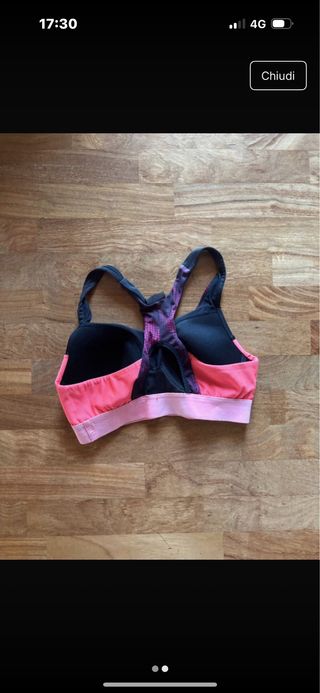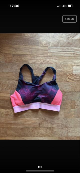Reggiseno sportivo con un design moderno e accattivante. - Spalline incrociate sul retro. - Fascia elastica sotto il seno. - Tessuto traspirante. - taglia s