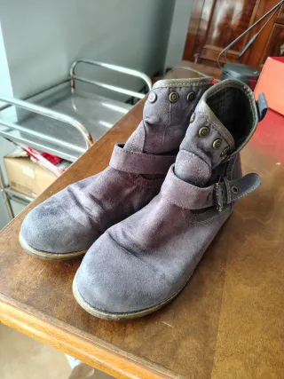 Stivaletti scamosciati color verde/petrolio alla caviglia, in morbida similpelle, molto carini. Con cinturino con fibbia alla moda e borchiette decorative sul bordo. Taglia 40. Dal tallone alla caviglia sono alti 10 cm. Presentano segni di utilizzo, tutti riportati in foto e ben visibili. Sono disponibile a trattative. Applico sconti se si vuole creare un set dal mio guardaroba. Nei miei pacchetti, confezionati con cura, lascio sempre un regalino per i miei acquirenti ❣️