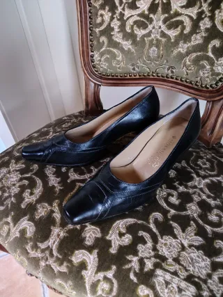 Eleganti scarpe décolleté slingback in pelle. Misura 37. Tacco 6 cm. Modello con cinturino e fibbia. Design classico e versatile. In foto sono presenti i dettagli, la punta è leggermente scolorita ma sono in ottimo stato. Sono disponibile a trattative. Applico sconti se si vuole creare un set dal mio guardaroba. Nei miei pacchetti, confezionati con cura, lascio sempre un regalino per i miei acquirenti ❣️