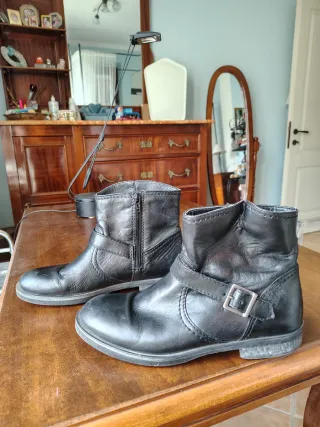 Bellissimi stivaletti neri in cuoio, adatti alle stagioni autunno e inverno. Misura 39. Ottima qualità. Dettaglio fibbia. Chiusura con zip. Molto comodi e tenuti benissimo, non presentano evidenti segni di utilizzo, come si vede chiaramente in foto. Sono disponibile a trattative. Applico sconti se si vuole creare un set dal mio guardaroba. Nei miei pacchetti, confezionati con cura, lascio sempre un regalino per i miei acquirenti ❣️